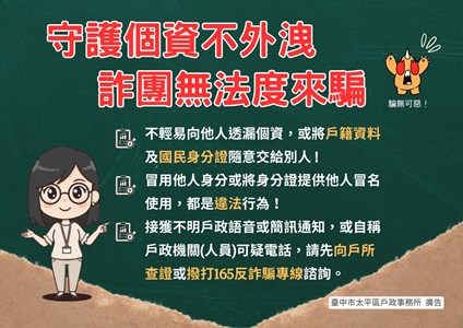 守護個資不外洩詐團無法度來騙