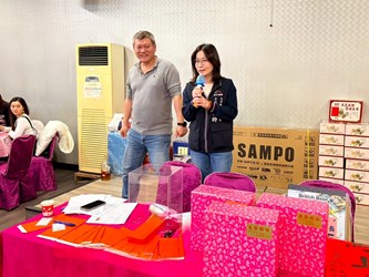 閻泰利里長與中山里社區發展協會閻卿樺理事長,感謝服務團隊於去(114)年的辛勞付出,透過尾牙聚餐、慶生及摸彩活動,慰勞夥伴、共享歡樂時光。