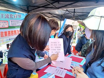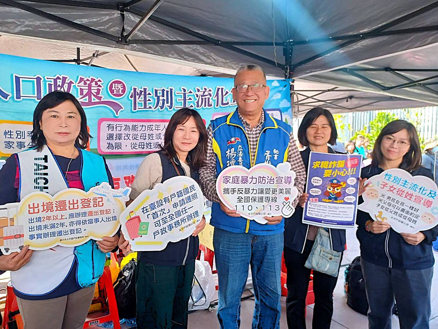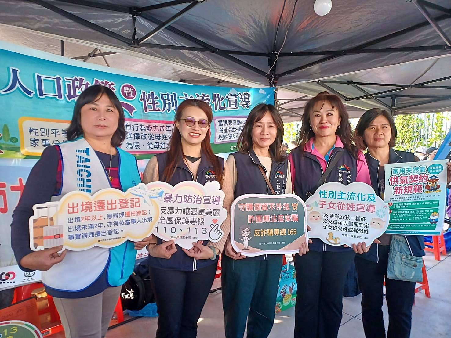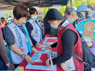 「枇杷FUN城市」活動本所設攤戶政業務宣導太平區公所陳柏宏區長、新福里蔡美慧里長、宜佳里張麗眞里長一同參與