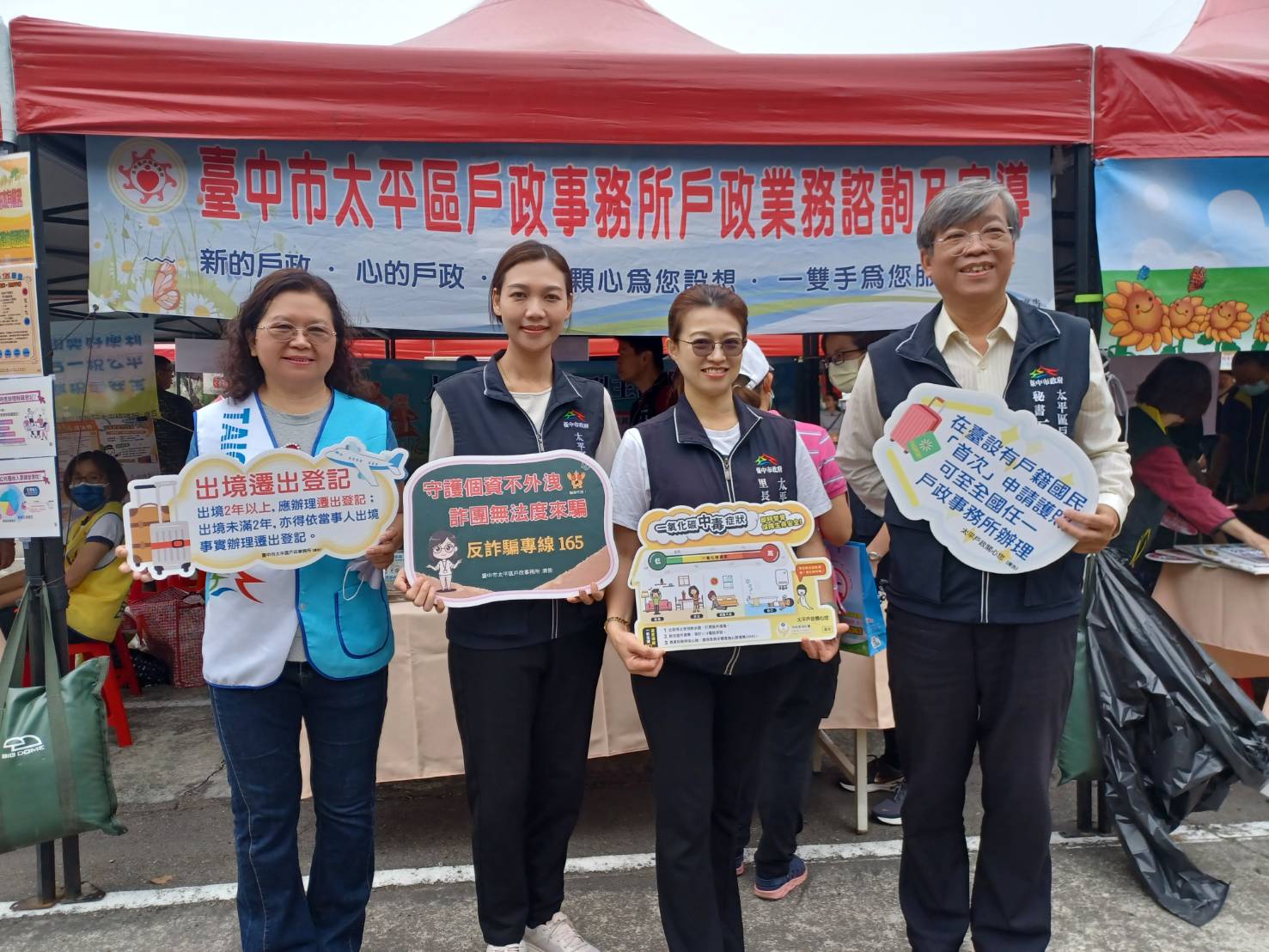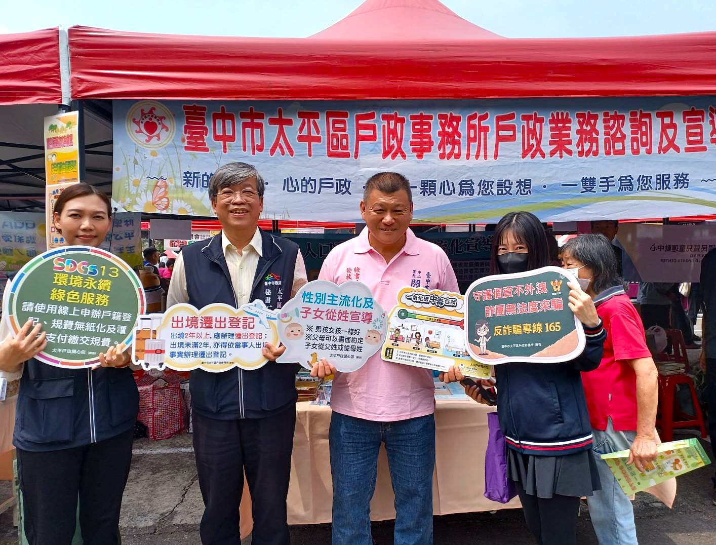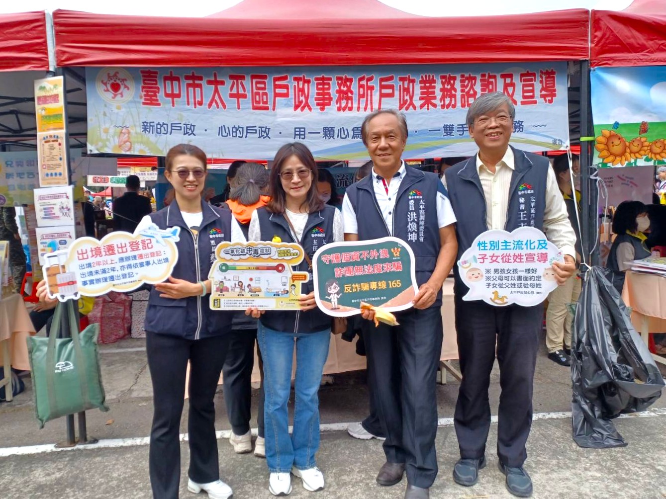 活動中,市議員蔡耀頡、太平區調解委員會洪煥坤委員、民政顧問王萬杰、民政顧問李月娥、市政顧問黃東守、永平里賴義涼里長、中山里閻泰利里長、太平里林龍洲里長、中平里林碧森里長、東平里温錦昌里長、新福里蔡美慧里長等皆親臨本所攤位,共同關心戶政服務推動情形,為活動增添熱鬧氛圍。